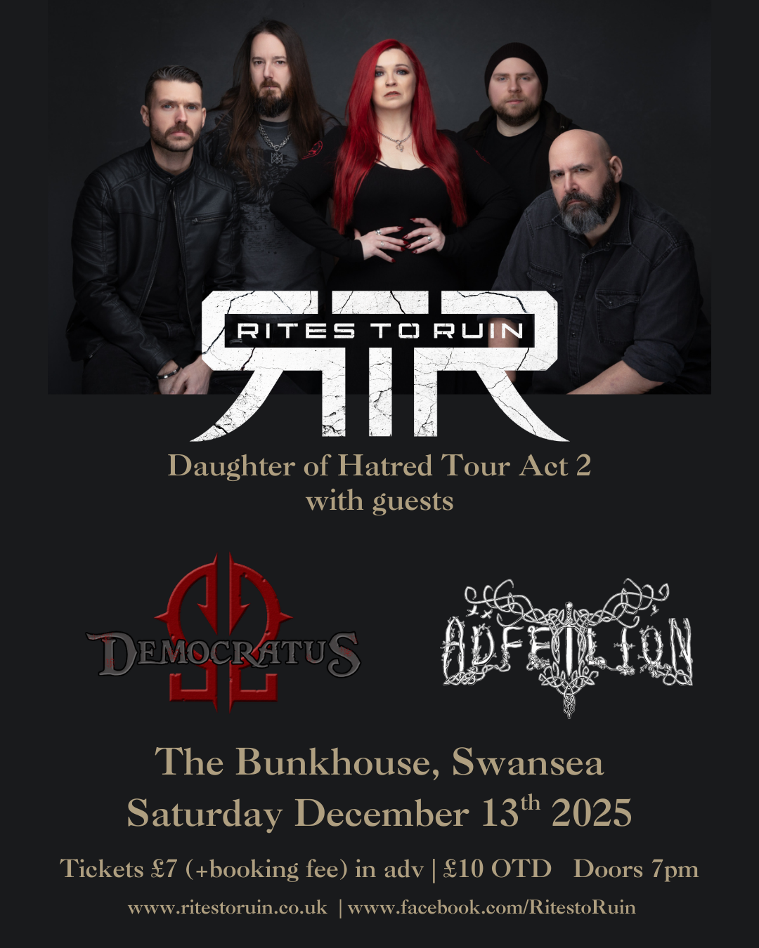 with guests Democratus and AdfeilonTickets £7 (+ booking fee) ADV / £10 OTD Doors 7:00pm